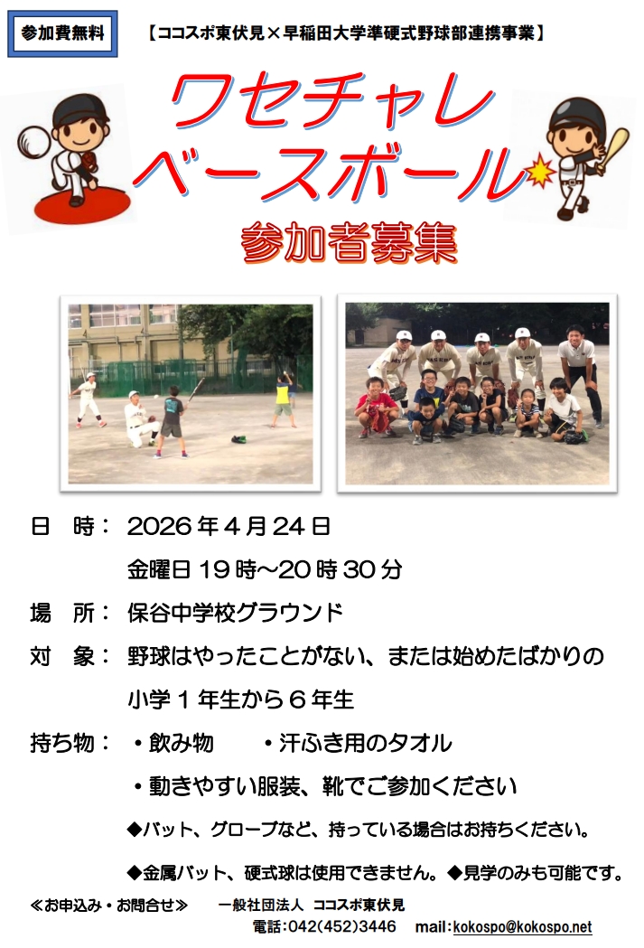 【参加者募集】ワセチャレベースボール(4/24)